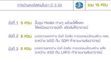 เป้าหมาย : เรียนจบ ผู้เรียนสามารถออกแบบโครงสร้าง PEB และโครงข้อแข็งชนิดอื่นๆได้ อย่างเชี่ยวชาญ พร้อมทำการบ้านส่งอาจารย์ได้